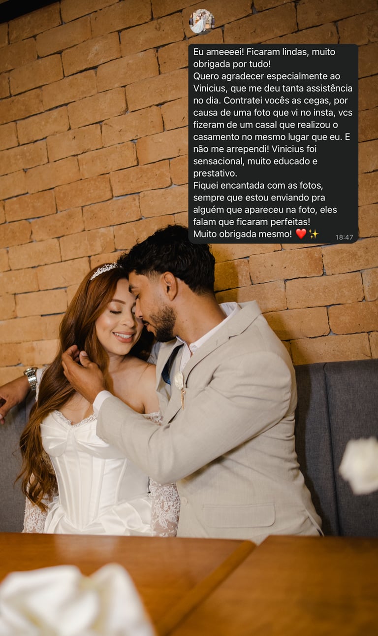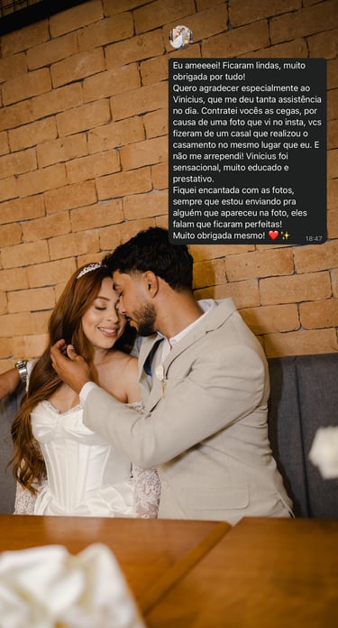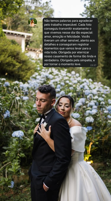 "A câmera captura o que os olhos veem, mas uma boa fotografia de casamento revela o que o coração sente."